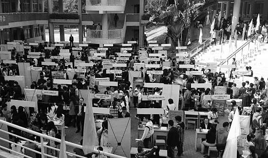 本报讯 记者康洁摄影报道:7日上午,由市人社局、汕头职业技术学院联合举办的“追逐梦想·职点未来”2014届毕业生专场招聘会在汕职院举行。此次招聘会共吸引来自珠三角、粤东地区及周边省份250多家用人单位参会,提供就业岗位4435个,汕职院3500多名应届毕业生参加了招聘会。