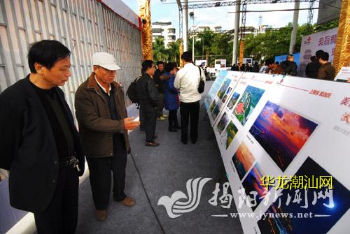 为助力创建省文明城市工作,丰富广大群众文化生活,18日上午,由市委宣传部、中国联通揭阳市分公司主办,市摄影家协会承办的“美丽揭阳——沃的家乡印记”摄影大赛作品巡展在揭东区榕泰健身广场开幕(见图。卢泽鸿 摄)。