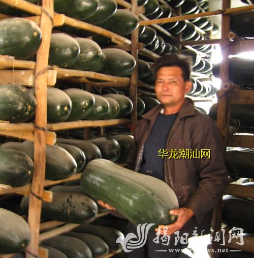 踏进吴炎雄的家里,记者就被几排四五米长、2米多高的“冬瓜棚”吸引住了。“这些冬瓜是刚从瓜园里采摘来的,就等着春节过后瓜贩上门来联系收购。”吴炎雄有些腼腆地对记者介绍,贮藏冬瓜需要搭起一层层木架,然后将冬瓜一排一排存放,这样可起到通风透气作用,使冬瓜至少能保存3个月。