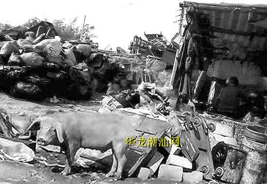 记者来到此处窝棚区时,数位男女正坐在椅子上不停地拆开袋装垃圾,捡拾其中有利用价值的冷饭菜和烂菜叶,放进一旁的桶里。紧挨养猪窝棚,是一个垃圾堆放点。这里既有用袋子紧裹的生活垃圾,也有堆如小山般高的动物粪便,现场散发阵阵常人难以忍受的剧臭,甫一靠近忍不住阵阵干呕。