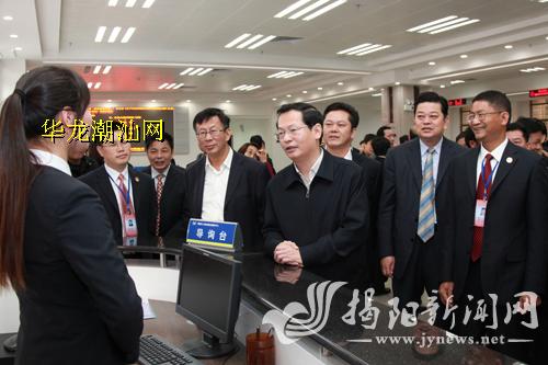 26日上午,市委书记、市人大常委会主任陈绿平到刚刚正式启用的市政务服务中心调研,强调要让行政审批权力在阳光下运行,将市政务服务中心打造成粤东乃至全省审批项目少、环节简、效率高、费用低、服务优的政府服务机构,全力营造法治化国际化营商环境,推动揭阳加快发展、跨越崛起。
