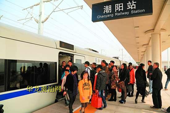 11时39分,D2295动车驶入潮阳站,乘客有序地随指引上车。