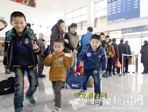 葵潭站几个小孩跟随大人验票上车。林洁松 摄