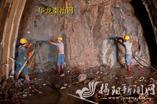 潮惠高速银山隧道位于揭西县河婆街道,穿越银山山脉,总长593米,预计今年8月土建工程完工。图为银山隧道施工现场。特约记者 李维照 摄