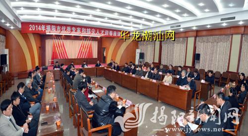 近日,2014年市优秀专家和拔尖人才迎春座谈会在市机关办公大院西附楼召开(见图。涂英鹏 摄)。市委常委、组织部长叶少明通报了去年我市经济社会发展和人才工作情况,提出要以服务揭阳发展大局为己任,坚持双向发力,不断改革创新,努力开发新成果、创造新业绩,为建设粤东经济强市和粤东上善之区提供强有力的人才支撑。