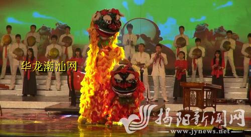 在新春即将到来之际,揭阳地方特色文化青狮献演2014全球潮人春节联欢晚会,在晚会首个节目《祥瑞迎春》上,青狮以精心编排的精彩表演为全球潮人献上新春祝福。