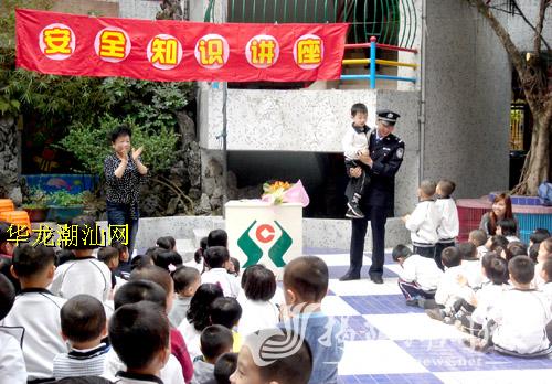 榕城公安分局民警深入居民小区,向社区儿童宣传安全知识。通讯员 摄