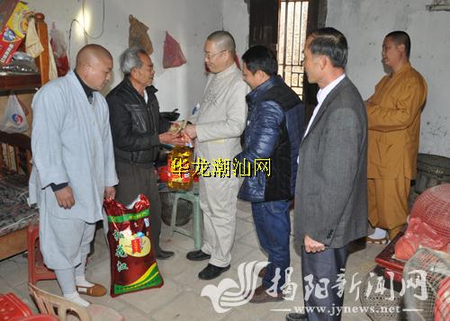 近日,普宁市下架山镇来山阁禅寺与该镇有关人员到和寮村开展访贫问苦送温暖活动,为该村五保户、孤寡老人送上了慰问金及大米和食用油,让他们过上一个欢乐祥和的新春佳节。
