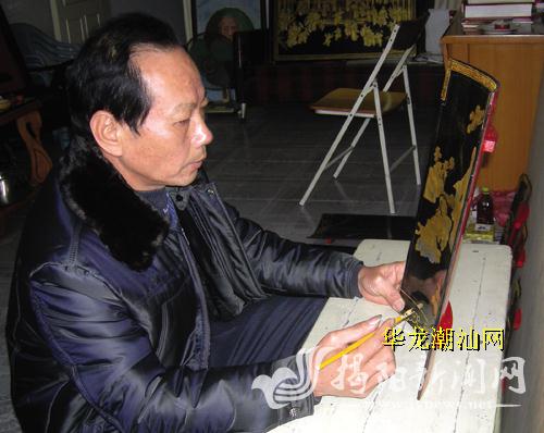 得父亲的真传,陈映能的漆画技艺精湛。他经常受邀到各地为祠堂庙宇绘制漆画,汕头、潮州、汕尾……他一年大部分时间都在外面工作。惠来世铿院中厅、后厅的漆画,便是陈映能负责的项目。当时他任组长,带领组员花了3年的时间才完成创作。相信去过世铿院的人,都会对里面金光夺目、绘制精细的漆画发出赞叹,并留有深刻的印象。