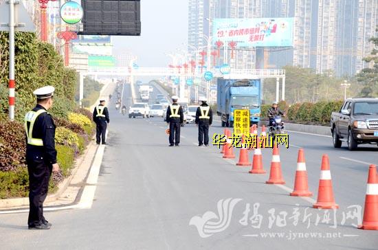 春运期间,交警部门在交通要道设置检查点加强安全检查。