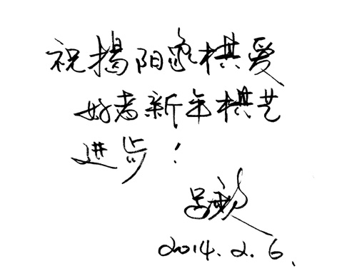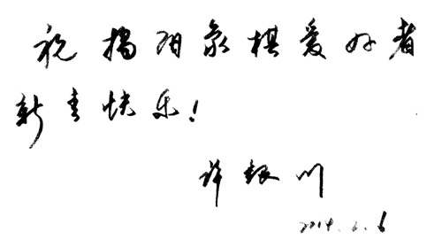 吕钦与许银川通过本网向揭阳广大象棋爱好者致以新春的问候,并祝大家新春快乐,“棋”开得胜,马到功成。
