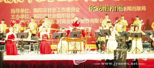 据悉,本次活动由市社会工作委员会、市文广新局指导,市社会组织总会主办,揭阳农村商业银行协办,市戏剧家协会承办。音乐会演出前,市社会组织总会向揭阳农商行赠送书画作品。