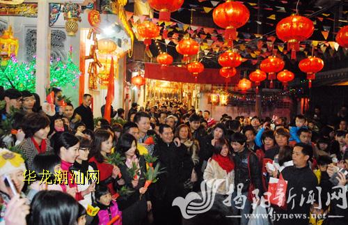 10日晚,榕城区石狮桥人头涌动,民众“行彩桥”祈福。郑楚藩 摄