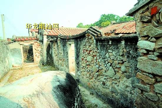 沿着凤岗村蜿蜒曲折的石板小径,一座座潮汕传统民居栉次鳞比、错落有致。凤岗古村落因腹地偏小,土地资源匮乏,因此,民居多依山错落,巷道也是因地制宜顺势而建,处处透露着古朴自然的味道。就连石头,都照原始的样子“长”在家里。原来,凤岗村在建造房屋时,都是遵从自然、见缝插针,遇有天然巨石,一般不会破毁,因此就出现房屋里赫然躺着庞然大石的“石头厝”,当地人也称为“石布厝”。目前,全村约有五、六家这样的老屋,这些巨石或在天井,或于房内,看起来不仅不觉得碍眼,更是一种独具风格的“自然装饰”。