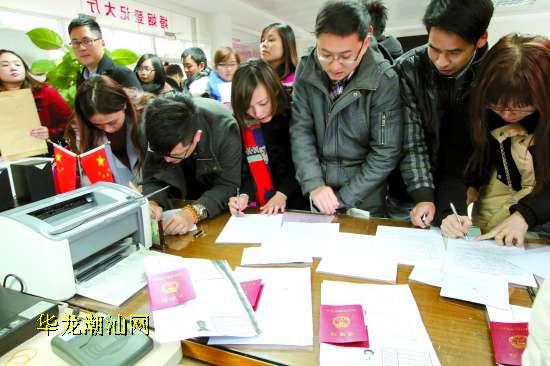 金平区婚姻登记处的工作人员告诉记者,为了应对节后结婚登记热潮,他们及时增加人手,并于昨天早上7点提前上班,没想到一上班就看到,准新人们已经排了很长的一条队,排在最前面的是一位老人家,他大清早5点就来为自己儿子和准儿媳来排队,谁知工作人员提前上班,轮到时当事人还没有到场。据统计,昨天金平区婚姻登记处一共办理了171对新人结婚登记,所有结婚证也都在当天全部颁发给新人们。