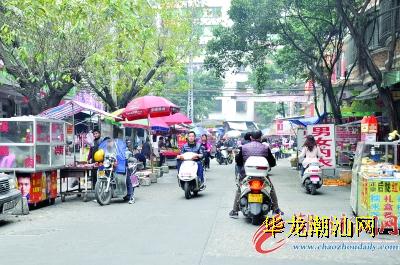陈少谨说,潮州一些人流比较密集的地区,农贸市场容量却很小,很多商贩在市场里找不到位置,只能摆到附近的街道上。一些农贸市场没有位置停车,连摩托车也没有地方停放,因此,很多市民宁愿在街边小贩购买也不愿去市场里买菜。
