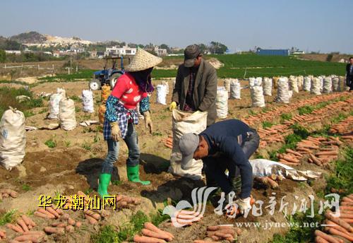 据介绍,惠来县佳泰业农业开发有限公司成立于2012年,主要从事农业技术的研究、开发、种植、水果蔬菜销售以及货物进出口。该公司自有基地位于神泉镇芦园村,主要种植胡萝卜。基地种植面积500亩,三面环山,面向大海,环境优美,地理条件优越,是发展综合性生态农业的理想场所。该基地种植的胡萝卜选用纯正品种,具有高产优质、抗逆性强、适应性广、红皮红肉、红心、表皮光滑、条形直等优点,揭阳地区可以在9月上旬至10月中旬进行播种,次年2~4月份可收获。