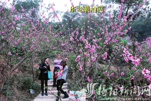 近日,位于榕城区仙桥街道的华阳观周边满山遍野桃花盛开,吸引众多游客前来观光。 郑楚藩 摄