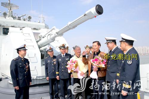近日,全国著名“战斗英雄”麦贤得、“八。六”海战一等功臣戴寿怀应邀参加“揭阳舰”组织的主题教育活动。在驻汕海军某部“揭阳舰”上,两位英模听取了海军技术能手、“揭阳舰”主炮班长马少利对新装备性能的讲解,勉励刚刚加入人民海军战斗序列的“揭阳舰”官兵,传承先锋精神,牢记强军目标,献身强军实践。活动中,戴寿怀结合“八。六”海战战史,与“揭阳舰”官兵共话“强军梦、我的梦”。赵长宏 郑沛宗 摄