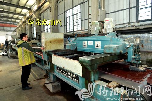 在工人们的熟练操作下,一块块巨大的石头,经过切割机、切边机、打磨机、抛光机等机器设备“鬼斧神工”般的加工,摇身变成了一片片光滑如脂、色彩绚丽的石板材。这是记者在揭阳市恒辉石材实业有限公司(下称“恒辉”)生产车间见到的景象。