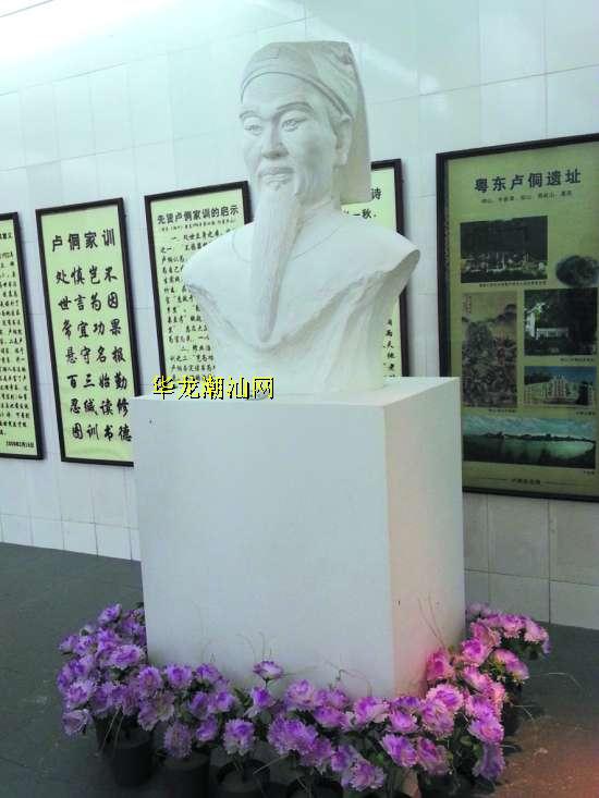 据卢侗后人卢璧锋介绍,日前他专门去到龙川博物馆探访并亲眼见到这块碑刻。该碑刻长98厘米,宽91.5厘米,厚6厘米,碑石漆黑光亮,上为卢侗手书《罗恺墓志铭》全文,虽历经几百年仍完好无损。近日,记者也看到了该碑刻的拓本,拓本全文以楷书书写,字迹清晰如初,笔力古朴苍劲。对先贤及其书法颇有研究的卢璧锋告诉记者,该碑刻堪称“四绝”:一是碑石好。这是从北方精选专用于石刻的碑石,坚实精致。二是刻工好。墓志铭的每一个字都精雕细刻,一笔一划与原书一模一样,足见宋代石刻的精致与功力。三是文章好。墓志铭记叙了当地名人宋代探花罗恺一生为政清廉、体恤民情的事迹,文笔优美。四是书法好。卢侗手书俊秀飘逸,取法唐宋诸家,熔于一炉,古朴苍劲,开一代书风。据潮学专家介绍,卢侗手书碑刻的出土,或将改写广东乃至岭南地区的书法史,提高潮人的书法品位和地位。图为“卢侗纪念馆”中的卢侗塑像。