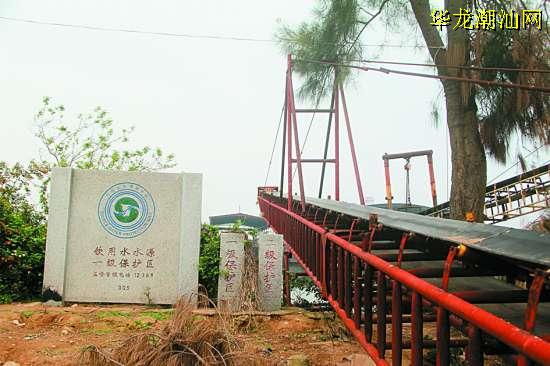 就在取水口附近,记者同样看到一块警示牌“饮用水水源一级保护区”:“取水口处下游200米处至上游7500米共7700米长河段水域及相应两岸的坡脚线各后退50米陆域为饮用水源一级保护区,禁止排污、停靠船舶、木(竹)排,不得游泳、捕捞和从事一切污染水源的活动。不过让人担忧的是,就在这样一块警示牌旁边,却赫然建起了一座大型的运送带,而在取水口不足100米的沿岸,杂草丛生,还散落着不少垃圾废物。据知情者透露,附近的一些居民有时还把生活污水直接排进韩江。