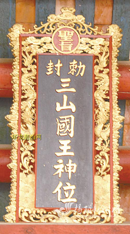 于是,三山神从最初的一般地方神,“经韩愈一祭,升级为潮汕最大的社神;再经宋太宗诏封,便一跃成为人间地位极高的‘国王’(摘自揭籍作家贝闻喜所著的《三山国王崇拜》一书)。”