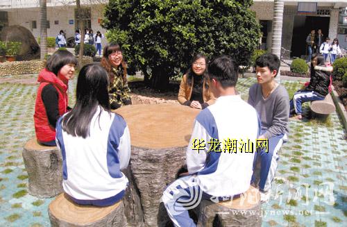这就是揭阳第二中学的英语角活动,该活动既提高了学生的英语口语水平,又增强了师生的沟通。