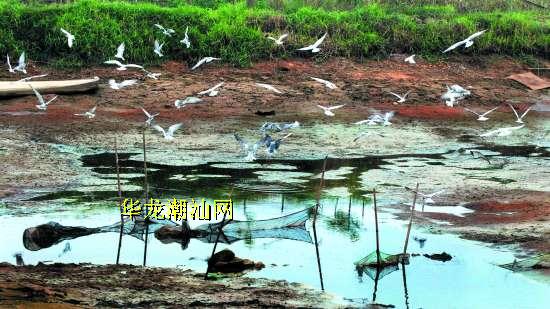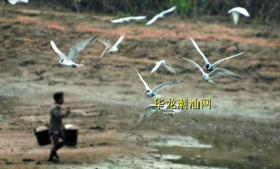 进入三月份,汕头各地的养殖鱼塘纷纷进行“车池”养护,随着小鱼小虾及贝类露出水面,成千上万的鸟儿蜂拥而至前来觅食,形成了独特而壮观的场面。