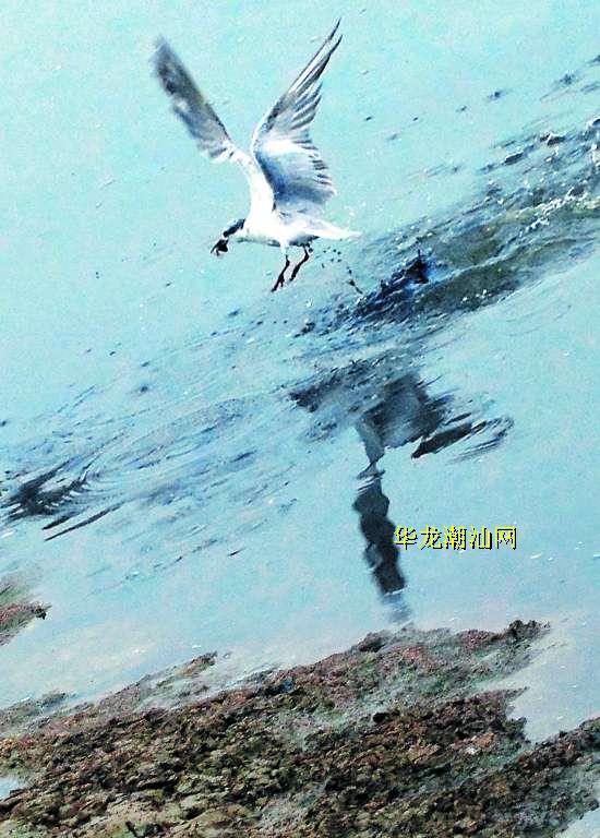 在几乎抽干了池水的连片养殖池上空,只见“白茫茫一片”,尽是上下纷飞的鸟儿,轻灵的身影倏忽而来,倏忽而去,伴随着清脆的鸟鸣声,低空盘旋的鸟儿已经疾速掠过水面,叼衔起一条尾巴还在扭动的小鱼“急剧升空”,嘴巴一抖一抖的,一条小鱼就咽进了腹中……成千上万亩的鱼虾养殖池成了鸟儿们的“免费大食堂”,轻盈身影水面觅食的场景让人过眼难忘。