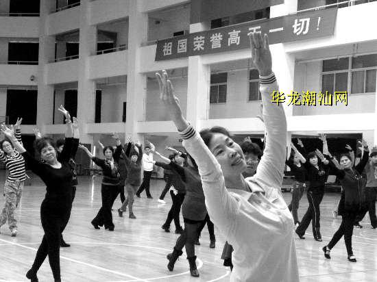 本报讯 (记者肖彤兰摄影报道)近日,广东省广场舞一级社会体育指导员培训在汕头乒乓球训练基地举行,来自粤东四市的80名一级社会体育指导员,在省派来的老师的指导下,学跳广场舞。(如图)