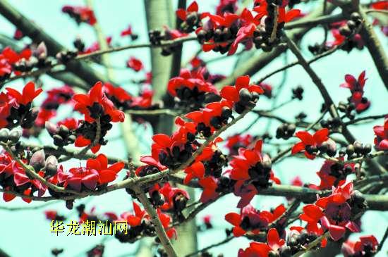 春风吹拂绿万家,木棉花开红满天。