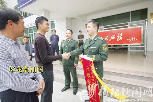 3月19日上午,相继出院的邱国兴、蔡木森两人在亲属的陪同下,相约来到靖海边防派出所,再次看见当晚的绿军装,激动的两人在递上锦旗的那一刻语塞了,朴实的他们只是紧紧地握着官兵的手,心中的敬意,纵有千言万语,却只是哽咽着无法表达……
