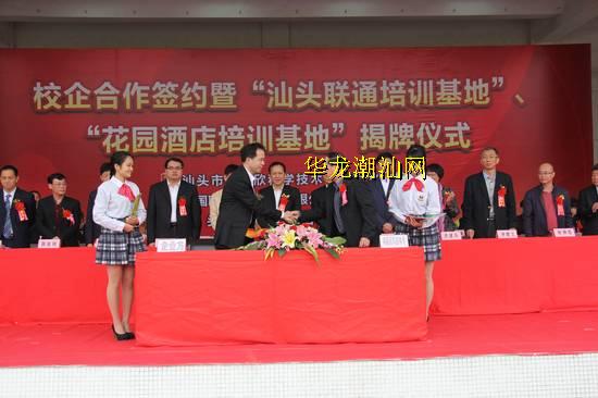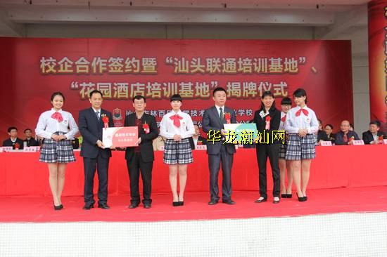 汕头联通公司和国瑞地产旗下的汕头花园酒店管理公司各代表着该行业发展的佼佼者,有着巨大的行业发展优势和市场资源,科技中专是国家级重点学校,有厚实、优越的办学资源,校企双方强强联手,校企对接合作,优势互补,资源共享,互惠双赢。依托学校教育资源优势设立“汕头联通培训基地”和“花园酒店培训基地”,学校将根据企业的人才需求和员工岗位能力需求,为企业员工开展培训,力争成为企业人才支持的后方基地;借力企业的市场优势和对人才的需求,开设企业冠名班“通信技术专业(汕头联通班)、酒店管理专业(花园酒店班)”,实施订单式培养,为企业培养岗位对接人才。