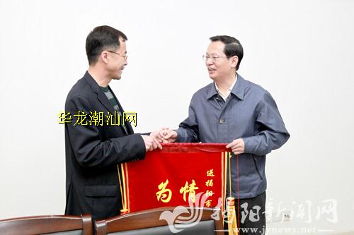 25日,陈绿平到市人民来访接待厅接访群众,空港经济区京南村村民专程送来锦旗向他表示感谢。杨继斌 摄