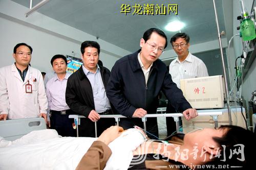 陈绿平专程赶赴普宁看望因火灾受伤的民工。杨继斌 涂英鹏 摄