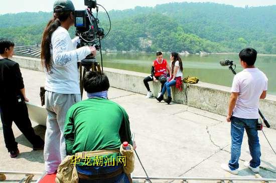 由吴秀波领衔主演的《我的青春高八度》在汕头开机。图为剧组在汕大水库堤坝上拍摄场景。 本报记者 杜一方 摄