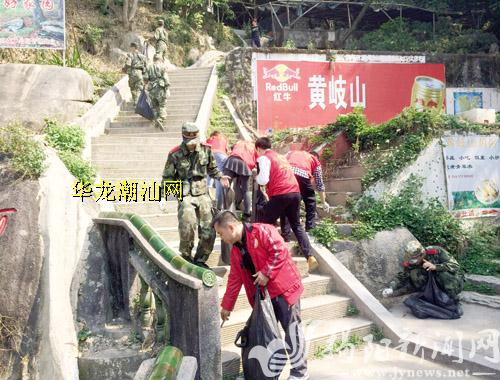 仪式结束后,志愿者们前往黄岐山清理垃圾,开展绿化揭阳志愿行动。