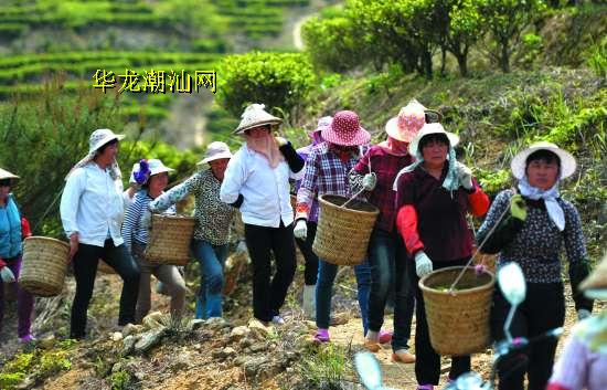 从茶叶到茶汤,是质的升华。在天有茶园里,记者目睹了今年春茶采摘到制作全过程。来自饶平、诏安的采茶女50多人来到双髻娘山上采摘头趟春茶。一日千余斤茶青,在国家级茶艺大师、工夫茶艺“非遗”传承人郑惠丰的“魔术手”下,有条不紊地进行晒青、摇青、发酵、杀青、揉捻、烘焙等十二道古法工序,精制出优质茶叶。郑惠丰介绍说,这里的茶树依山水、近森林,有着优良的天然生态环境,不用农药、激素、化肥,只需精心培育,适时采摘,就能盛产好茶。