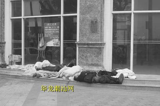 说起此事,金港广场的保安叫苦不迭。“这两人经常砸碎铺面的玻璃门,到铺面内大小便,搞得臭气熏天。物业人员已经更换了好几次玻璃门了。”保安告诉记者,物业管理处经常组织保安进行驱赶,但两名流浪汉根本不为所动。