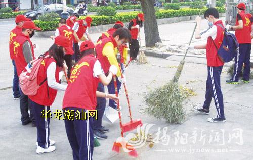 近日,普宁市开展“创建文明城市,美化市容市貌” 环境卫生清洁志愿行动,来自团普宁市委、普宁市教育局、城建局、环卫局、志愿者协会的全体干部职工及普宁市区部分中小学校学生和青年志愿者1万人走上街头,清洁环境卫生,美化市容市貌。