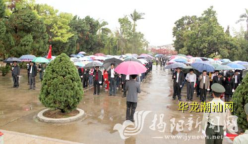 林万顷 林伟初 林志勤) 2日上午,揭西县各套班子成员,公、检、法等单位党员干部和河婆中学师生近300人到河婆象山革命烈士纪念碑祭奠革命先烈,并到金和镇南侨中学开展革命传统教育活动。