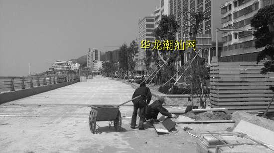 南澳县海滨路改造工程包括海滨路道路改造工程和粤东南澳岛海域海岸带整治修复,工程总投资3183万元,于去年8月份开工建设。海滨路道路改造取消了原机动车道与非机动车道间的分隔绿化带。目前路面工程已完工,景观绿化工程正加紧进行。海域海岸带修复整治工程建设长度约1.4公里,将进行海岸带景观、海岸带绿化、绿化带景观照明、海堤加固、景观卫生间等项目的建设。目前,已全面完成海堤加固工程,完成1千多米的海岸带观海景观廊道及栏杆设置、亲海平台、人行道基础浇筑和大部分路面砖的砌筑。