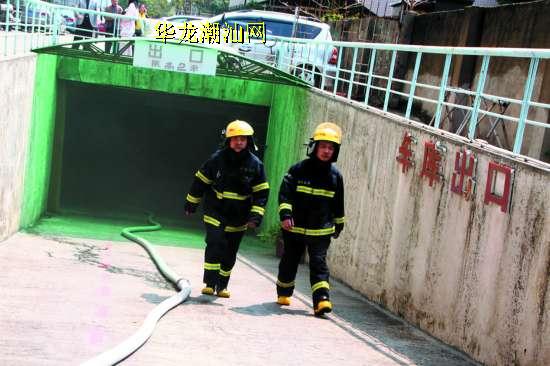本报讯(记者 杨立轩 袁笙 摄影报道) 昨天上午,金平区利安路,一辆停放在利鸿基大厦负二层的小轿车突然起火,滚滚浓烟迅速蔓延至整个地下车库。经过消防官兵及大厦保安员全力扑救,明火很快被扑灭,事故中没有人员伤亡。起火原因还在调查中。