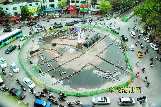 而在今年,“三身人”将再次进行改造,保留原有的主雕像,缩小现有绿化岛。近日,记者来到“三身人”就看到,施工方已经在雕像周围已经围起栏杆,确保施工安全,而原先的水池和绿化岛已完全拆除,只剩下雕像主体(见图)。记者了解到,“三身人”实施改造后,将在路口处增设红绿灯,其路面及交叉口配套设施改造优化将加强市政道路对两侧居民区、商业区的服务,缓解拥堵状况和城区交通压力。本报记者 黄鸿华 摄影报道