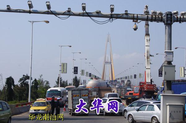 昨日中午,一辆集装箱大货车在C石大桥汕头往潮阳方向发生车祸,集装箱货车侧翻在桥面上,导致大桥全线车辆大量积压,国道324线潮阳往汕头方向车龙延绵10公里,交通接近瘫痪。直至下午3:10分,C石大桥才恢复双向通车。事故中,货车司机头部受伤。据了解,这是C石大桥通车以来最严重的一次拥堵。