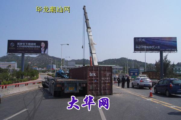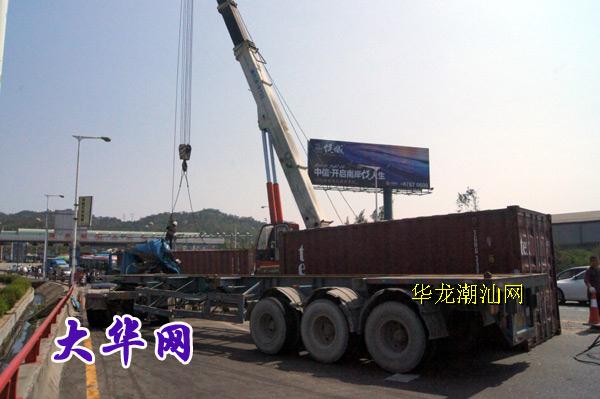 经过大约半个小时的紧张努力,侧翻的集装箱车被拖离现场。下午3时,汕头往潮阳方向恢复通行,3时10分,C石大桥恢复双向通车。由于堵塞车辆较多,漫长的车龙经过一段时间后才得以“消化”,缓缓通过C石大桥。