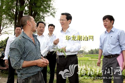 陈绿平首先深入到揭西县凤江镇鸿江村,察看鸿江洋万亩优质高产示范片的春耕情况,并来到田间地头与正在插秧的村民侯平亲切交谈,详细询问春耕备耕、秧苗长势和粮食生产等情况。当听到侯平说自己家里种了3亩多地,政府不但免费赠送推广的秧苗新品种,还补贴部分化肥,粮食不但能自给自足而且略有富余时,陈绿平十分高兴。他要求各级农业部门要主动作为,抢抓农时,优化服务,坚持科技兴农,组织开展好送科技、送农资、送服务到农田、到农家、到农民等工作,全力加快春耕春种进度,力争今年农业生产再获丰收。