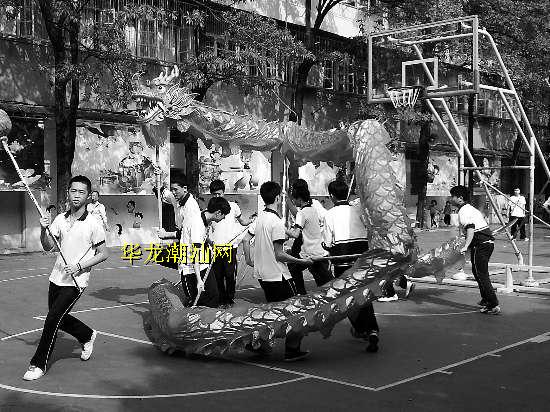 17日下午到晚上,金平区私立广厦学校里欢声笑语,鼓声阵阵,香港迦密圣道中学的师生们第一次来到这里,私立广厦学校为远道而来的朋友准备了舞龙、武术、猜谜、皮影等传统教学项目。操场上,私立广厦学校的学生以12人为一组,演示了虎虎生威的舞龙表演,香港的学生看得眼花缭乱。在私立广厦学校老师的演示和带动下,香港学生也“现买现卖”起来,拿起木柄跟着舞动起来,可是毕竟动作生疏,每节的龙身都不大听使唤,但是跳跃奔跑间,这些孩子们都兴趣盎然。