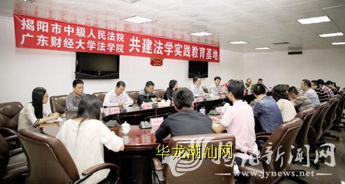 近日,揭阳中院与广东财经大学法学院在揭阳中院举行“共建法学实践教育基地”协议签字暨挂牌仪式(见上图)。